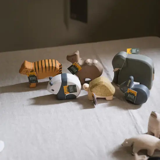 "Pole pole" significa lentamente, poco a poco, en suajili. El fabricante japonés T-Lab se preocupa por transmitir el trabajo artesanal de la madera. El diseño original minimalista, redondo y liso, hace que estos animales sean muy entrañables y adorables. Cortada, esculpida, finamente lijada y finalmente pintada a mano, ¡cada pieza es algo diferente y totalmente única!