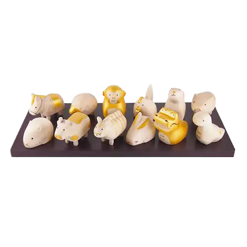 Ognuno dei dodici segni dello zodiaco cinese è stato trasformato in oro.