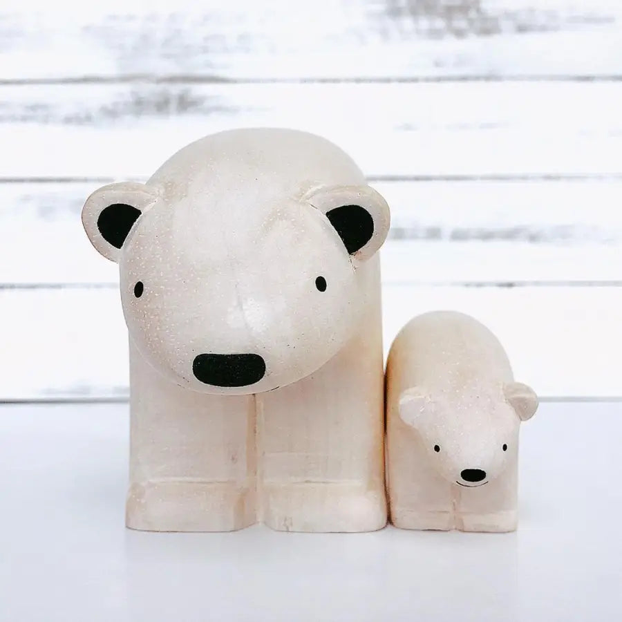 Realizzato in legno di Albizia Falcata proveniente da foreste gestite in modo sostenibile, questo orso polare riflette il rispetto per l'ambiente di T-Lab. Ogni pezzo è naturale, senza trattamenti chimici, sia nel legno che nella vernice.