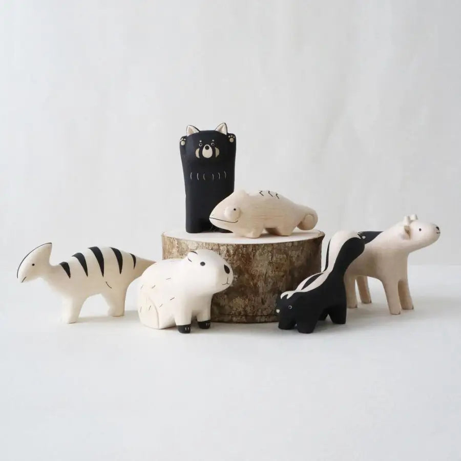 "Pole pole" signifie lentement, petit à petit, en swahili. Le fabricant japonais T-Lab a à cœur de transmettre le travail artisanal du bois. Le design original minimaliste, rond et lisse, rend ces animaux très attachants et mignons.Découpée, sculptée, finement poncée et enfin peinte à la main,chaque pièce est quelque peu différente et tout à fait unique !